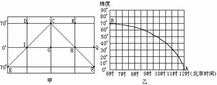 47.(8分)下图甲为某日的太阳光照图,乙是甲图中DI、KH、CG中对应的某一经线上该日各纬度的日出时间,读图回答下列问题:
