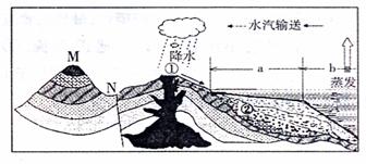 (2)图中所示水循环类型为 水循环,在该类水循环参与下,①处的 岩可转化为②处的 岩。(3分)
