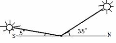 右图是某地某日两个时刻太阳高度及方向示意图,据此可以推出该地纬度是
