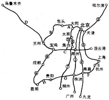 E、沪杭线 F、浙赣线 G、湘黔线 H、贵昆线