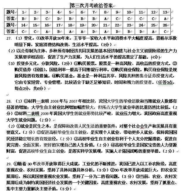 27.材料:新时期最鲜明的特征是改革开放。某校高二(2)班学生组织探究性学习小组,了解和认识改革开放30年来家乡居民生活的变化。(15分)