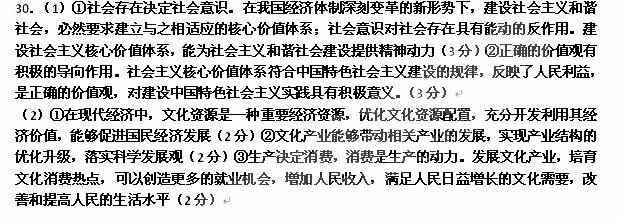 (1)结合材料一,简要分析建设社会主义核心价值体系的历史唯物主义依据。(6分)