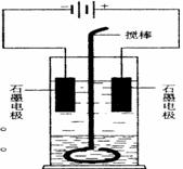 (2004全国)在玻璃圆筒中盛有两种无色的互不相溶的中性液体。上层液体中插入两根石墨电极,圆筒内还放有一根下端弯成环状的玻璃搅棒,可以上下搅动液体,装置如右图。接通电源,阳极周围的液体呈现棕色,且颜色由浅变深,阴极上有气泡生成。停止通电,取出电极,用搅棒上下剧烈搅动。静置后液体又分成两层,下层液体呈紫红色,上层液体几乎无色。根据上述实验回答:
