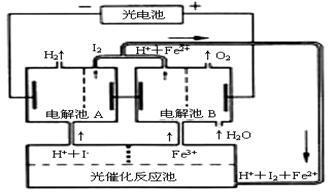 42.(2006年江苏卷(10分))利用太阳光分解水制氢是未来解决能源危机的理想方法之一。某研究小组设计了如右图所示的循环系统实现光分解水制氢。反应过程中所需的电能由太阳能光电池提供,反应体系中I2和Fe3+等可循环使用。