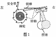湖北省襄樊四中2010届高三摸底考试如图1所示是一种汽车安全带控制装置的示意图.当汽车处于静止或匀速直线运动时,摆锤竖直悬挂,锁棒水平,棘轮可以自由转动,安全带能被拉动.当汽车突然刹车时,摆锤由于惯性绕轴摆动,使得锁棒锁定棘轮的转动,安全带不能被拉动.若摆锤从图中实线位置摆到虚线位置,汽车的可能运动方向和运动状态是( A