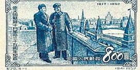 19. 右图是1953年2月14日我国发行的一套标题为《伟大的苏联十月革命35周年纪念》邮票,但很快就收回,你认为主要原因可能是