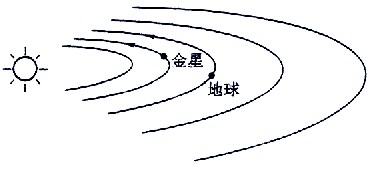 说明:地球和金星可以画在轨道的不同位置,但相对位置如下图所示。