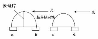 39、根据图示,将胚芽鞘尖端放在琼脂块上,则能正确表示a、b、c、d四个琼脂块中的生长素含量的是