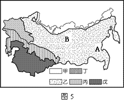 图5为俄罗斯天然植物分布图,完成19-20题。![]()