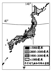 甲、乙、丙、丁、戊代表不同的植物景观,图中甲、乙两种植物的界线与下列等温线中最接近的是![]()