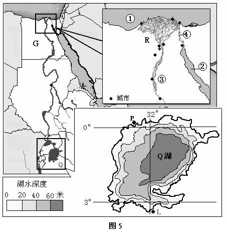 (5)对Q湖特点的概括与描述进行判断(相符为“√”,不符为“×”,将其填入题前的括号内。)(5分)