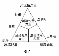 (3)据图5和图6(三角洲的分类示意图)的示意与显示,R三角洲的形状为