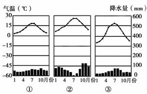 (2)读图6,列表比较①②③三地气温和降水的主要差异及其原因。(7分)