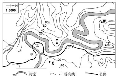 下图为某地区等高线地形图,有一公路沿河兴建。据图回答第15-16题