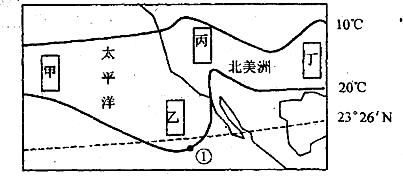 23、图中四个区域,南北温差最小的是