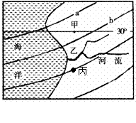 读“某区域等温线图”,图中等值线数值a>b,甲、