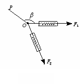 3.如图所示,在“共点力合成”实验中,橡皮条一端固定于P点,另一端连接两个弹簧秤,分别用F1与F2拉两个弹簧秤,将这端的结点拉至O点.现让F2大小不变,方向沿顺时针方向转动某一角度,要使这端的结点仍位于O点,则F1的大小及图中β角相应作如下哪些变化才有可能? (4分)