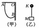 15.(8分)如图(甲)所示,将一条轻而柔软的细绳一端拴在天花板上的A点.另一端拴在竖直墙 上的B点,A和B到O点的距离相等,绳的长度是OA的两倍。图(乙)所示为一质量和大小均可忽略的动滑轮K,滑轮下悬挂一质量为m的重物,现将动滑轮和重