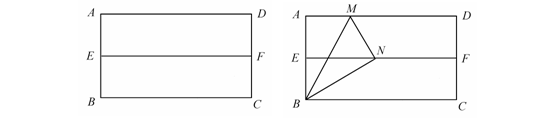 第二步:再一次折叠纸片,使点A落在EF上,并使折痕经过点B,得到折痕BM,同时得到线段BN(如图2).