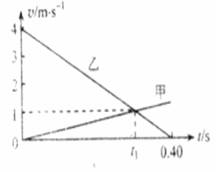 两物体甲和乙在同一直线上运动,它们在0-0.4s时间内的v-t图象如图所示。若仅在两物体之间存在相互作用,则物体甲与乙的质量之比和图中时间t1分别为