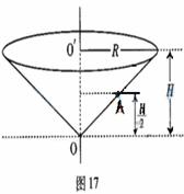 13、(12分)如图所示,一个竖直放置的圆锥筒可绕其中心OO′转动,筒内壁粗糙,筒口半径和筒高分别为R和H,筒内壁A点的高度为筒高的一半。内壁上有一质量为m的小物块。求