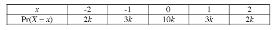 For the table to represent a probability function the value of k.