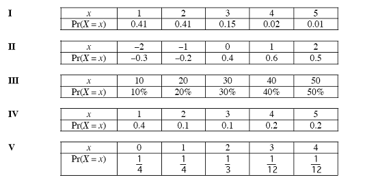2.Which of the following tables could represent a probability distribution of a discrete random variable?