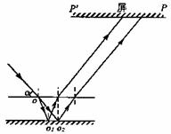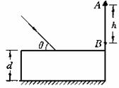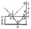 ,下表面镀有银,一束单色光与界面成角θ=45°射到玻璃砖表面上,最后在玻璃砖右边竖直光屏上出现相距h=2.0cm的两光点A和B,求玻璃砖的厚度d。