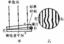 右图所示是用干涉法检查某块厚玻璃的上表面是否平整的装置,检查中所观察到的干涉条纹如图乙所示,则[