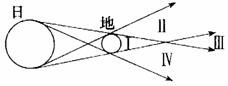 如图所示为发生月食时,太阳光照射光线的示意图,当月球进入图中哪个区域时,在地球上处于夜晚地区的观察者可以看到月食[