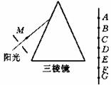 如图所示,一束阳光经三棱镜折射后在白色纸带上形成A-G的彩色光带,问: