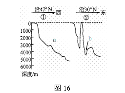 图16为大陆边缘向洋盆过渡的地形剖面示意,读图完成35-36题。