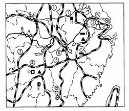 ⑴城市名称:A、 ;B、 ;C、 ;D、 ;E、 ;F、 ;