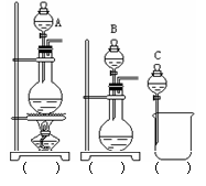 (1)请从①-⑩选出必须使用分液漏斗的实验,把编号填入最适宜的装置图A-C下面的括号中(多选要倒扣分):