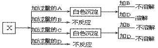 13、A、B、C和D分别是NaNO3、NaOH、HNO3和Ba(NO3)2四种溶液中的一种。现利用另一种溶液X,用如下图所示的方法,即可将它们一一确定。试确定A、B、C、D、X各代表何种溶液。