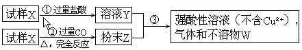 (2)若全部的溶液Y和全部的粉末Z充分反应后,生成的不溶物W的质量是m,则每份试样X中氧化铜的质量为_____________.(用m表示)