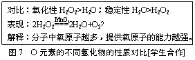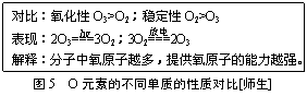 对比:化学性质的差异表现及解释:①单质:S、O2、O3;②氢化物:H2S、H2O、H2O2。先引导示范(图5),然后分组讨论,最后交流总结。