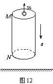 27.湖北省襄樊四中2010届高三摸底考试如图12所示,离地面足够高处有一竖直的空管,质量为2kg,管长为24m,M、N为空管的上、下两端,空管受到F=16N竖直向上的拉力作用,由静止开始竖直向下做加速运动,同时在M处一个大小不计的小球沿管的轴线以初速度v0竖直上抛,不计一切阻力,取g=10m/s2.求: