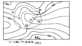 下图为“某地地形简图”,M点位于36.5°N。两中学生分别到达P、M点.测量并计算出两点相对高度是288米。读图回答9-10题。