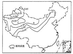 由于气候变异和人为活动引起的湿润系数在0.05-0.65范围内的地区土地退化过程称为荒漠化。而土地退化是指包括侵蚀、盐碱化、肥力衰竭在内的土壤退化过程和包括植被覆盖度降低、生物量减少和生物多样性下降等在内的生态系统退化过程。读图,回答24-25题: