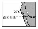 右图阴影部分为世界某大洲的局部某月(1月或7月)的等温线分布图,该处为高原地形,a、b为两条等温线,据此回答8-9题。