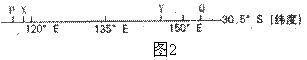 图2为世界地图上的一段纬线。P点以西为海洋,Q点以东为海洋,PQ为陆地。读图2,判断14-17