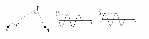 12、如图在均匀介质中M、N、P构成直角三角形,如图9甲所示,M、N垂直MNP所在平面的振动图像如图乙、丙所示,周期为0.4s,波在介质中的传播速度是5m/s,MN间距为5m。下列说法正确的是( )