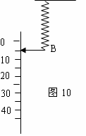 13、(3分) 如图10所示,一根弹簧其自由端B在未悬挂重物时指针正对刻度5N,在弹性限度内,当挂上80N重物时指针正对刻度45N,若要指针正对刻度20N应该悬挂