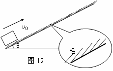 15、(10分)如图12所示,物体在有动物毛皮的斜面上运动。由于毛皮表面的特殊性,引起物体的运动有如下特点:①顺着毛的生长方向运动时毛皮产生的阻力可以忽略;②逆着毛的生长方向运动会受到来自毛皮的滑动摩擦力。