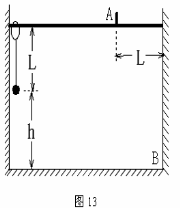 向右运动,在A处环被挡住而停止的瞬间,绳子所受拉力为多少?在以后的运动过程中,球是先碰墙还是先碰地?第一次碰撞点离B点的距离是多少?(已知A处离墙的水平距离为L,球离地的高度h=2L).