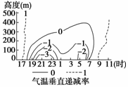 气温垂直递减率是指空气温度在垂直方向上随高度升高而降低的数值。读“某地春季某日气温垂直递减率(℃/100米)时空变化图”,回答20-22题。