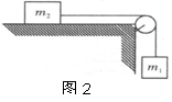 如图2所示,放在光滑水平桌面上的物体质量为m2,通过跨过定滑轮的绳与质量为m1的物体相连。若由静止释放,m1,m2的加速度大小为a。现取走m1,用力F向下拉绳,使m2的加速度仍为a。不计滑轮及绳的质量和绳与滑轮之间的摩擦,则( B )
