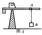 如图4所示的塔吊臂上有一可以沿水平方向运动的小车A,小车下装有吊着物体B的吊钩。在小车A与物体B以相同的水平速度沿吊臂方向匀速运动的同时,吊钩将物体B向上吊起,A、B之间的距离以h=H -