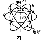 7.如图5所示,图中α、b、c、d四条圆轨道的圆心均在地球的自转轴上,均绕地球做匀速圆周运动的卫星中,下列判断图中卫星可能的轨道正确说法是 ( B)